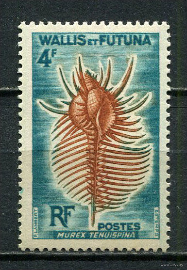 Французская заморская территория - Уоллис и Футуна - 1962/1963 - Ракушки 4Fr - [Mi.196] - 1 марка. MNH. (Лот 34JM)-TG2P11