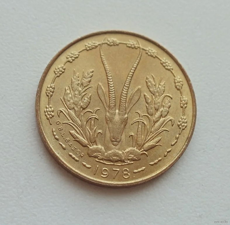 Французская Западная Африка 5 франков 1978 год состояние антилопа