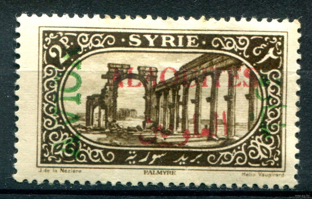 Французские Алавиты, территория Сирии - 1925г. - ландшафты, архитектура, авиапочта, надпечатка Aviation, 2 Pia - 1 марка - MH [Mi 39]. #4-W1-105-A-1
