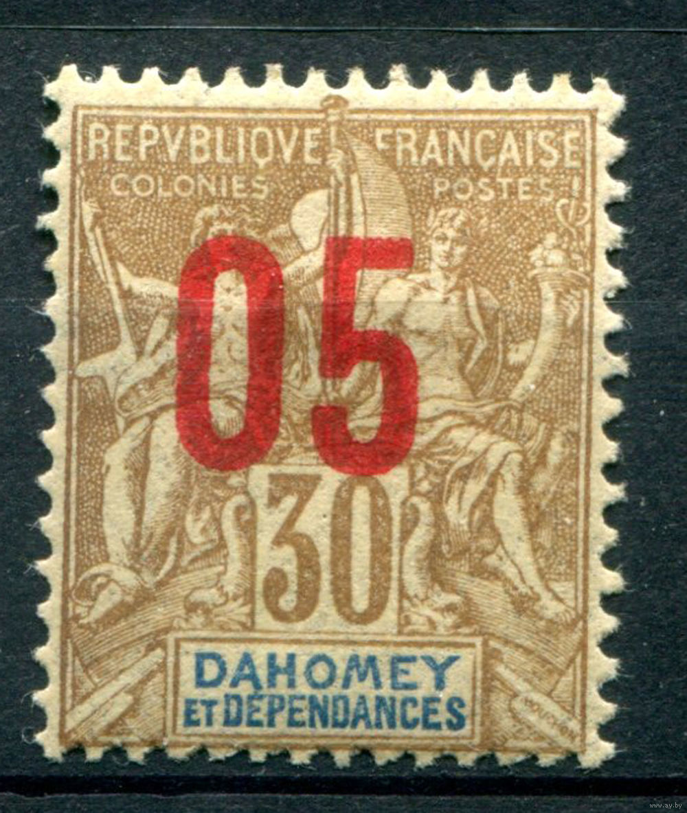Французские колонии - Дагомея (Бенин) - 1912г. - аллегория, надпечатка 05 на 30 с - 1 марка - MH [Mi 38]. #4-W1-105-A-1