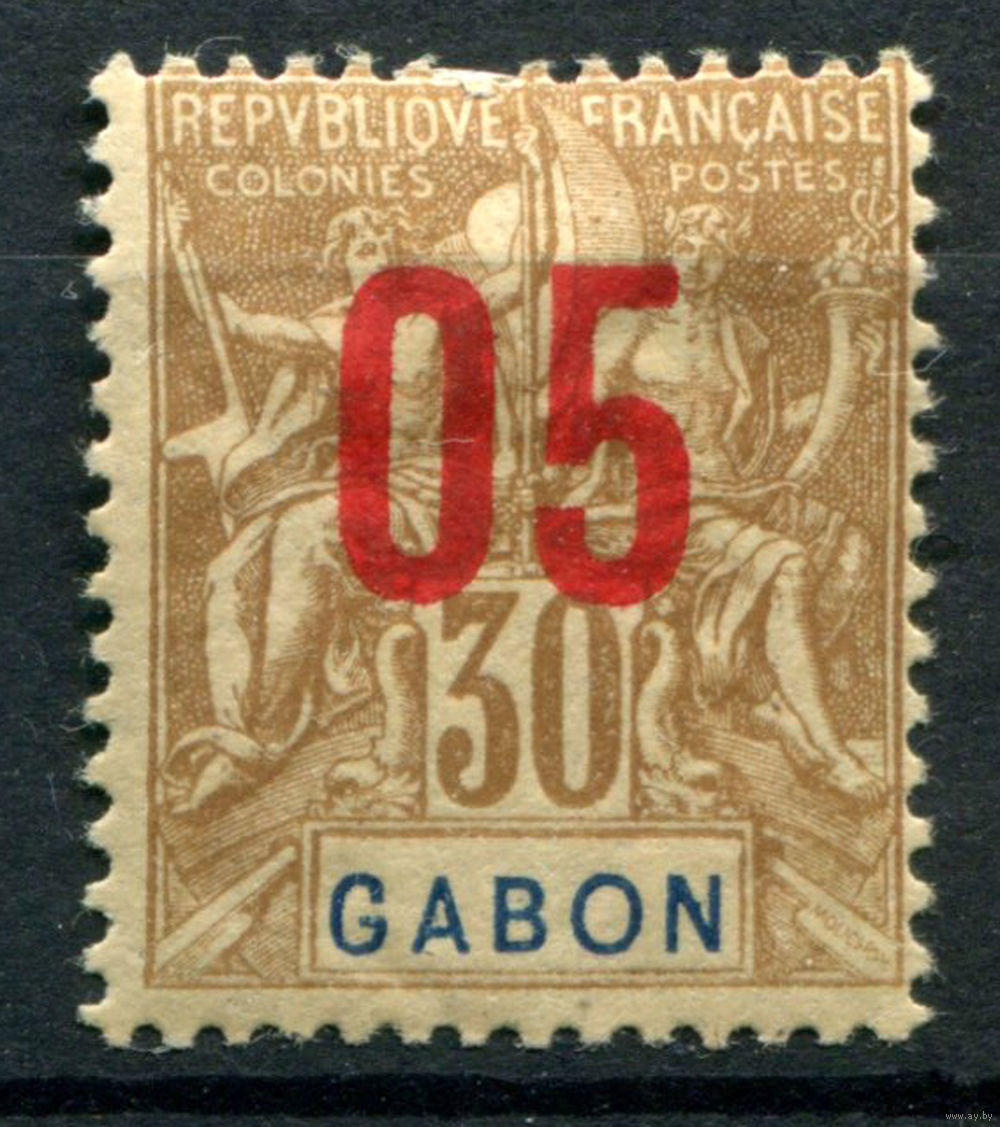 Французские колонии - Габон - 1912г. - аллегория, надпечатка 05 на 30 с - 1 марка - MH [Mi 77]. #4-W1-129-A-1