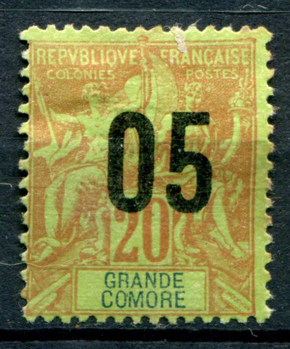 ![Французские колонии - Гранд-Комор (Мадагаскар) - 1912г. - аллегория, надпечатка 05 на 20 с - 1 марка - чистая, без клея [Mi 104]. #4-W1-123-A-1](https://s2-lot.aystatic.by/550x510/582/706/5040/5040706582_0.jpg)