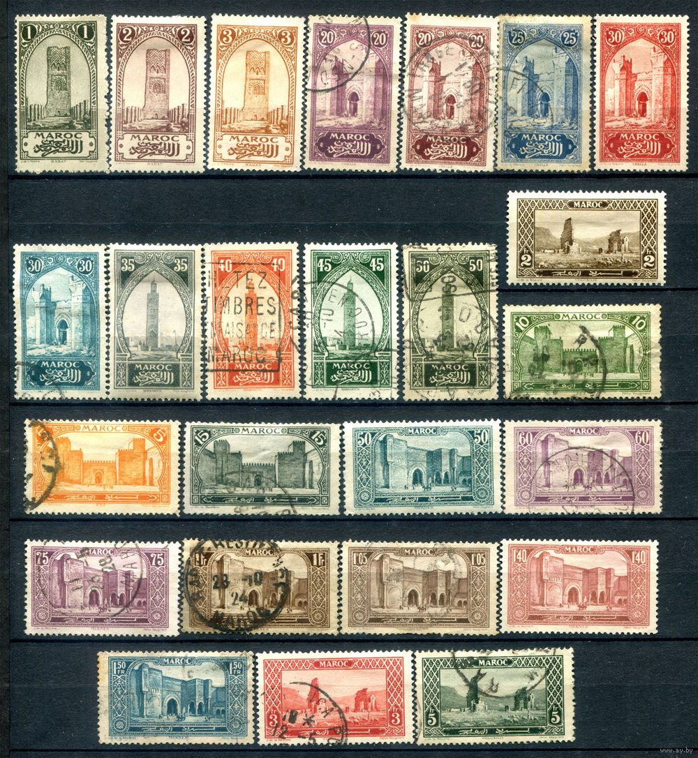 Французские колонии - Марокко - 1923/27г. - архитектура - 25 марок - гашёные, MH, номинал 10 с небольшим разрывом справа. #4-W1-127-B-2