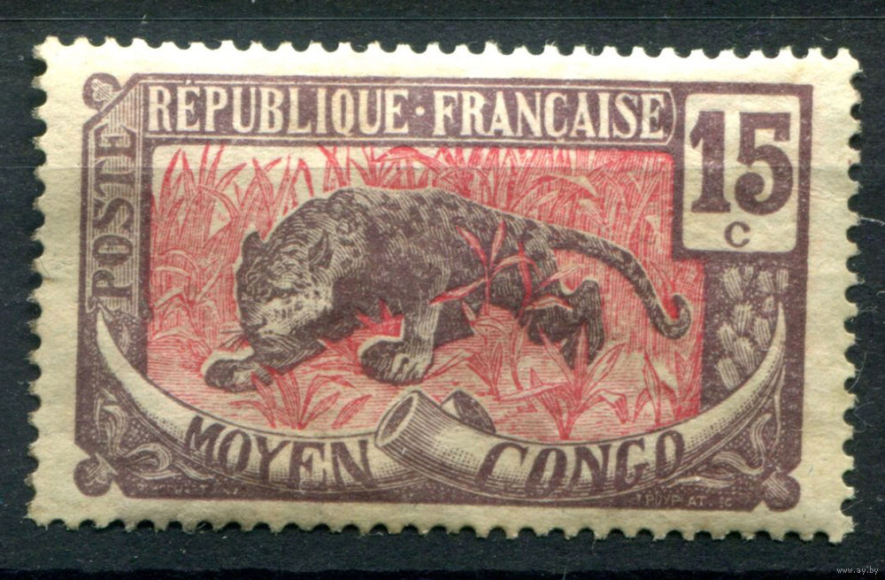 Французские колонии - Среднее Конго - 1907г. - леопард, 15 с - 1 марка - MH [Mi 6]. #4-W1-129-A-1