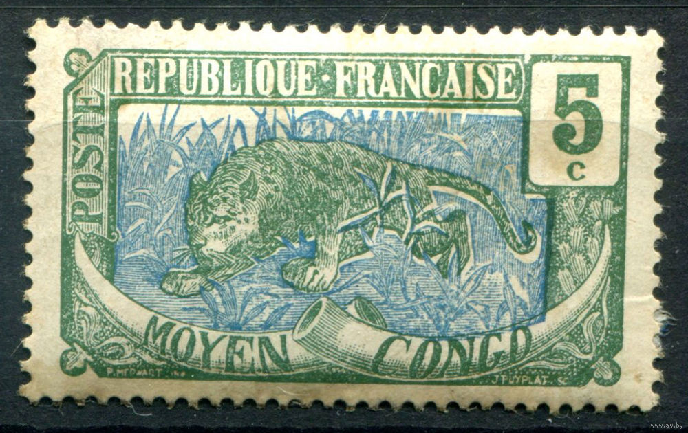 Французские колонии - Среднее Конго - 1907г. - леопард, 5 с - 1 марка - MH [Mi 4]. #4-W1-129-A-1