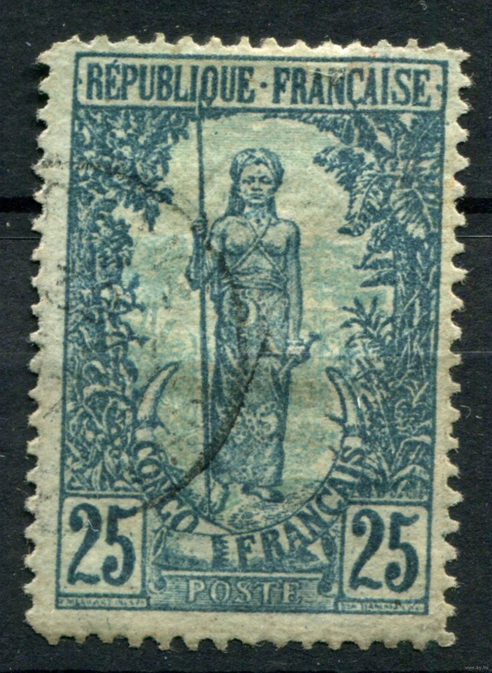 Французские колонии - Среднее Конго - 1907г. - женщина, 25 с - 1 марка - гашёная [Mi 8]. #4-W1-129-A-1