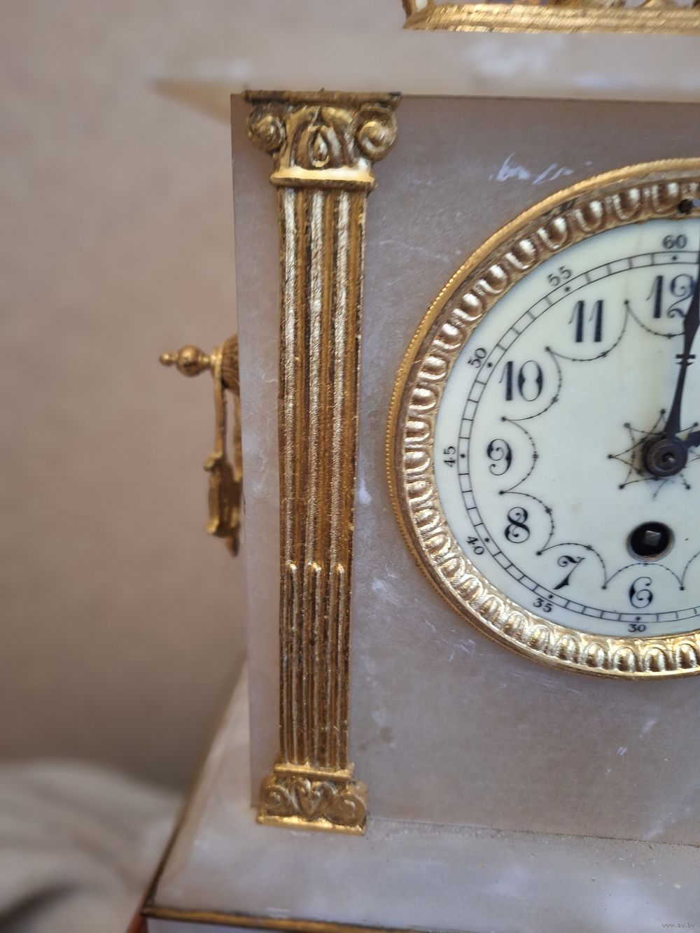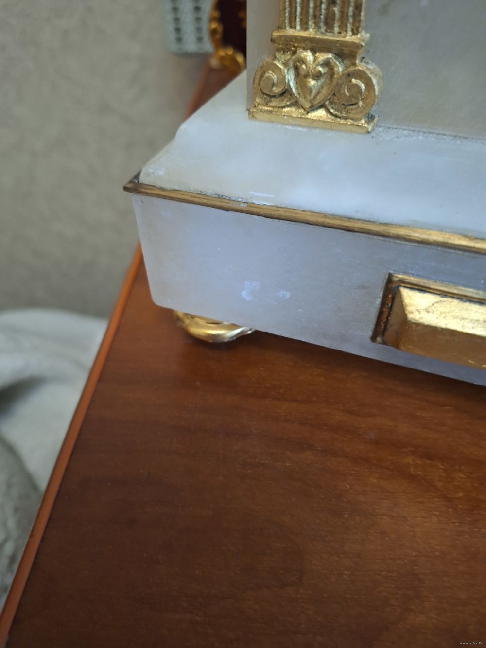 Корпус украшен боковыми ручками и ионическими пилястрами спереди Завод на 8 дней Высота 40см