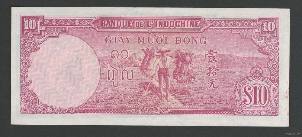 Французский Индокитай 10 пиастров 1947 года. Тип Р-80(2). Состояние UNC