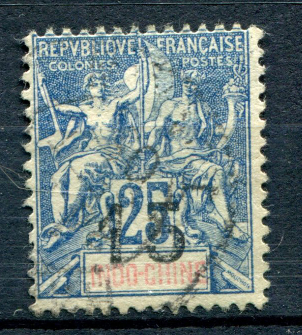 Французский Индокитай - 1899/1901г. - аллегория, надп 15 с на 25 с - 1 марка - гашёная [Mi 23]. #4-W1-127-B-1