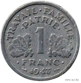 ФРАНЦУЗСКОЕ ГОСУДАРСТВО. 1 ФРАНК 1943