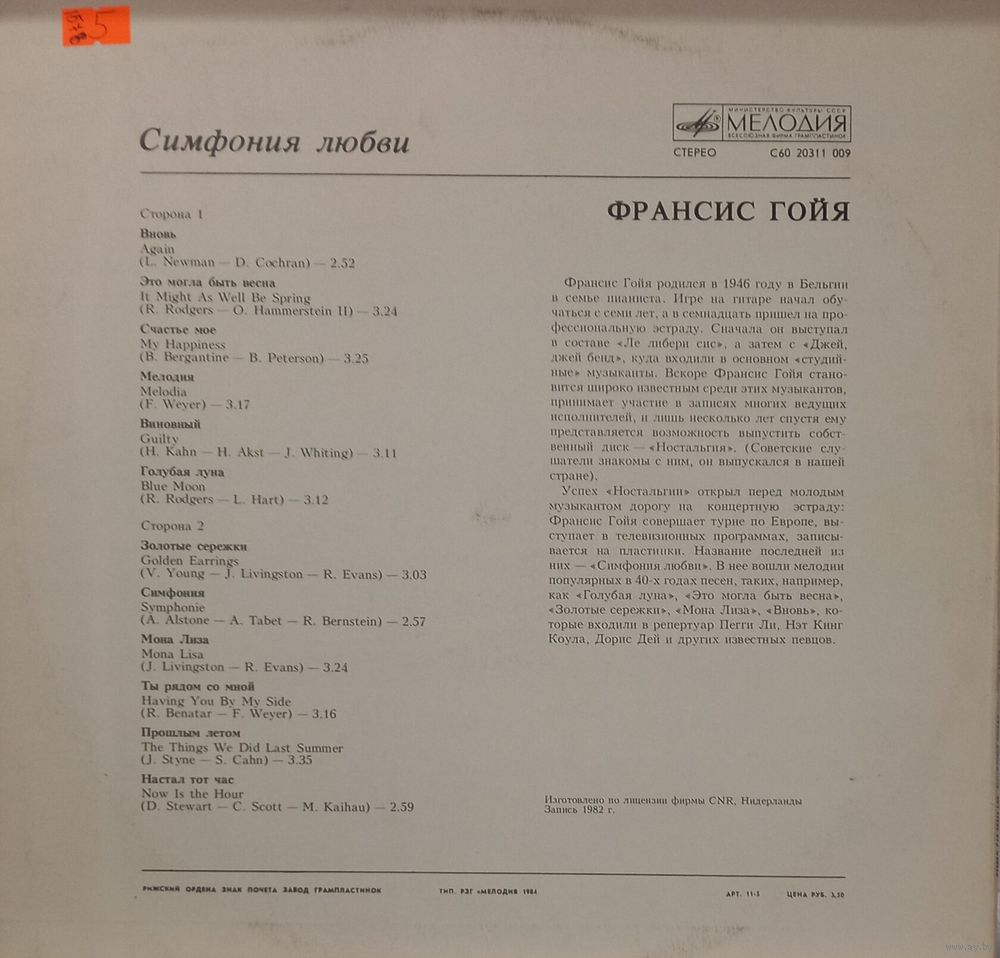 | Исполнитель | Франсис Гойя - Симфония Любви |