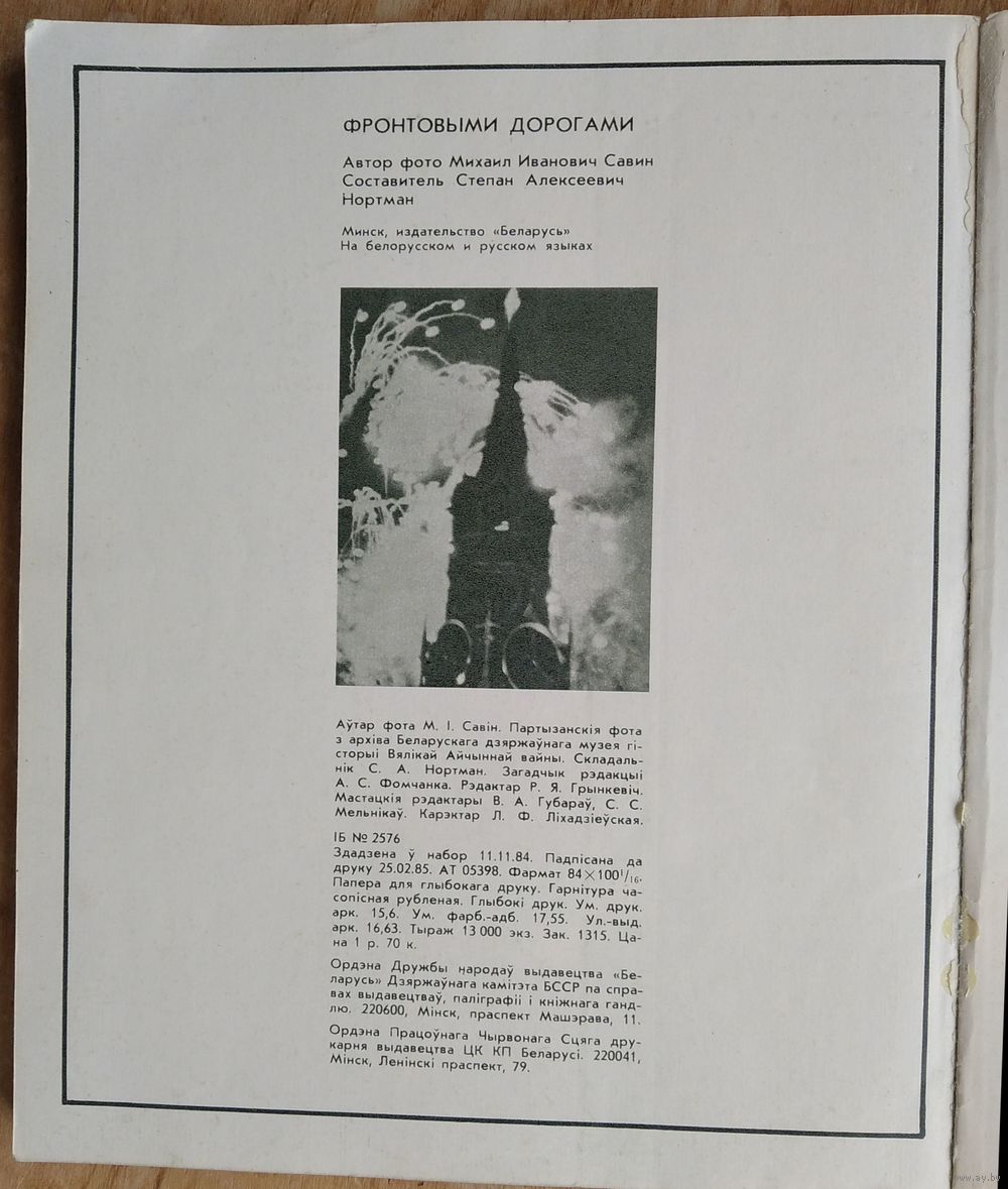 Франтавымі дарогамі. Фронтовыми дорогами. Фотаальбом. Склад. С.А.Нортман. Мн. : Беларусь, 1985 г. 158 с. Мяккая вокладка.