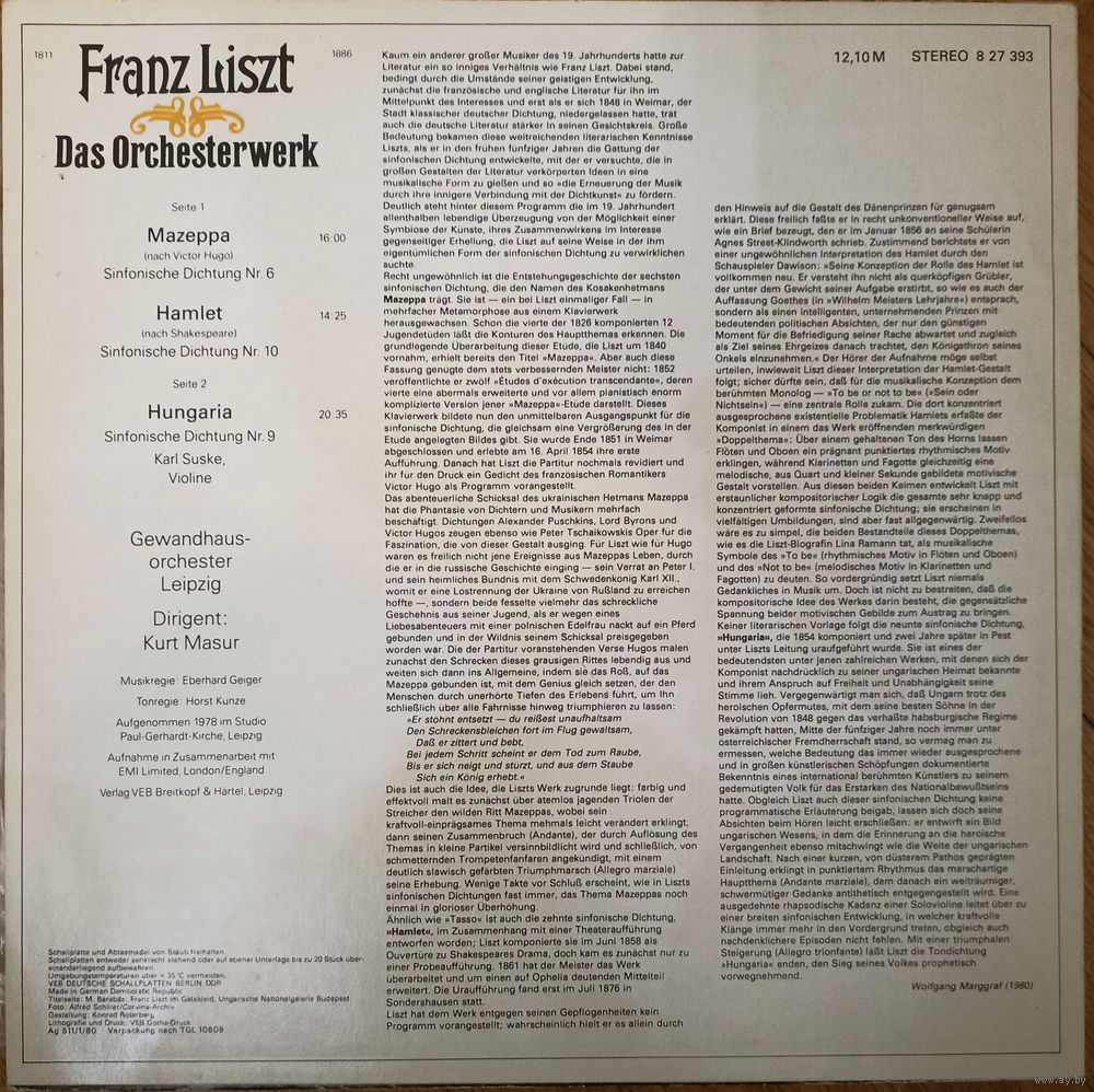 Franz Liszt – Gewandhausorchester Leipzig, Kurt Masur – Mazeppa / Hamlet / Hungaria