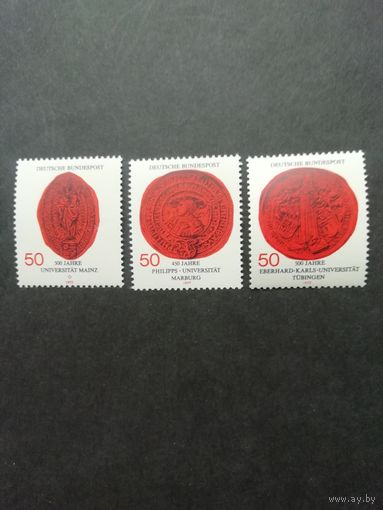 ФРГ 1977 Серия из 3 марок "Университеты Германии: 450 лет Университету в Марбурге, 500 лет Университету в Майнце, 500 лет Университету в Тюбингене" (чистые**) Mi.938-939,946 каталог 3.20 евро