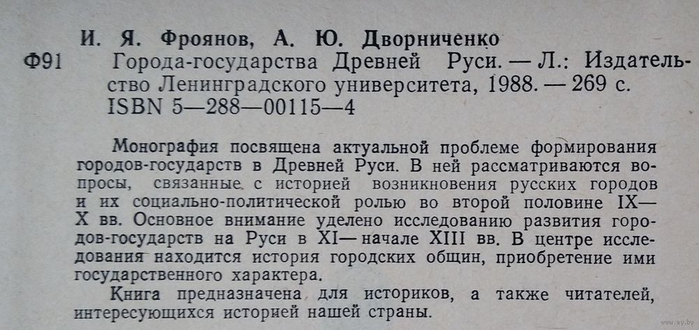 Фроянов И. Я., Дворниченко А. Ю. Города-государства Древней Руси. Монография. Л. Издательство Ленинградского университета 1988г. 269 с. Твердый переплет, Обычный формат.