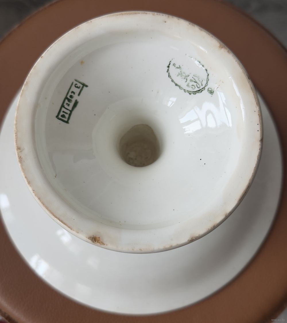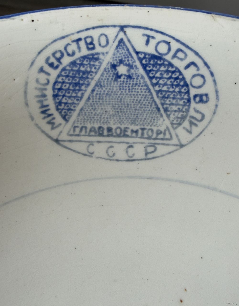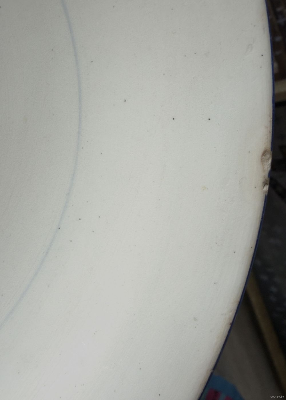 Высота 14/ диам 24 см есть пару незначительных сколов с внутренней стороны и маленький с лицевой.