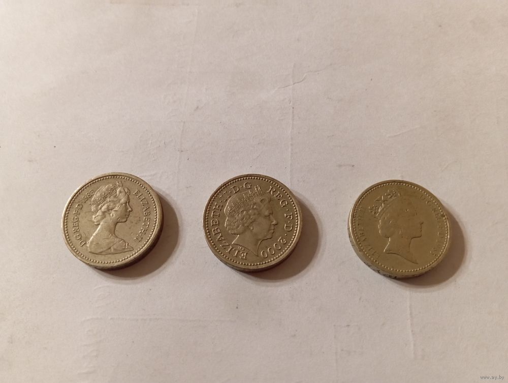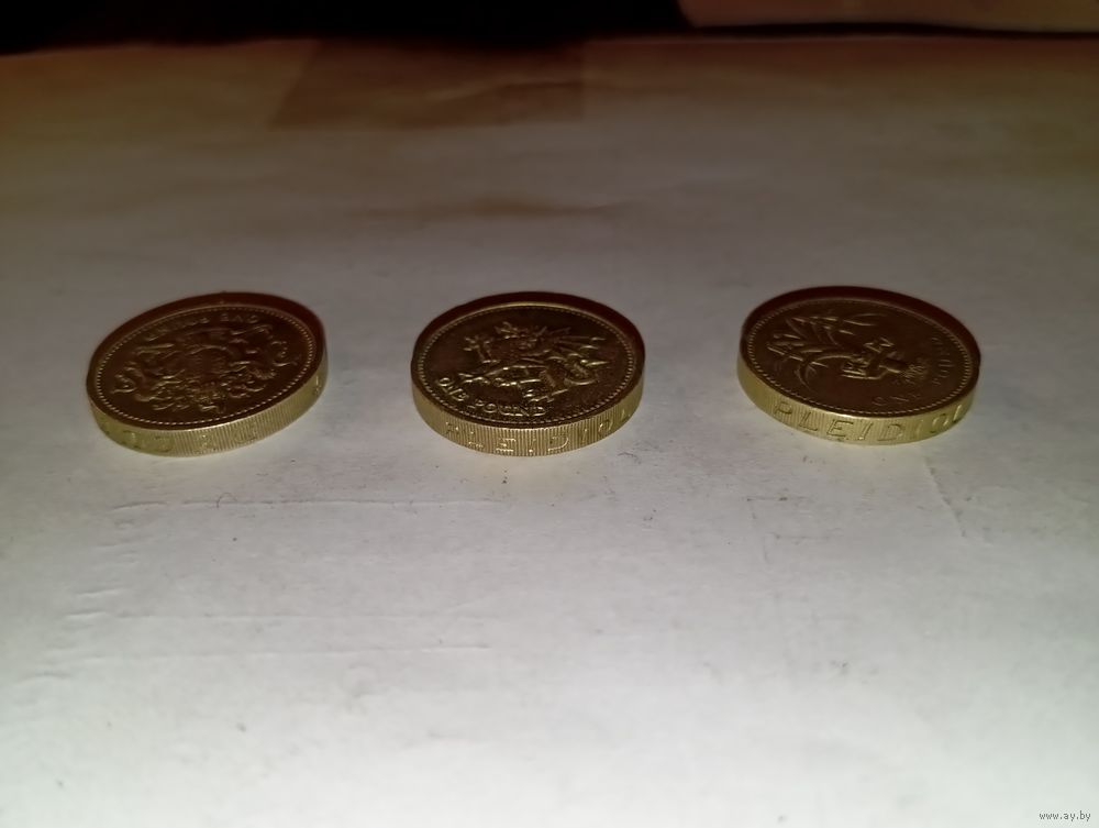 Фунт (3 штуки) разных лет. На одной монете перевернутая надпись на гурте.
