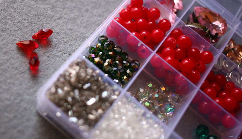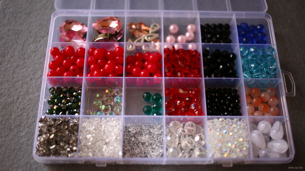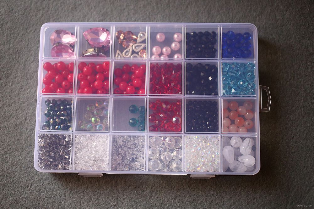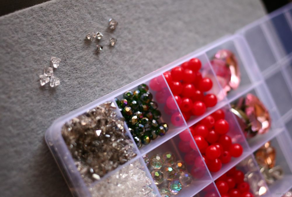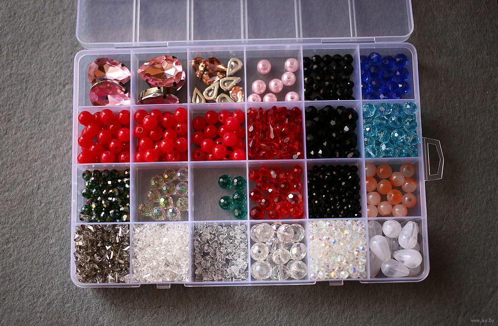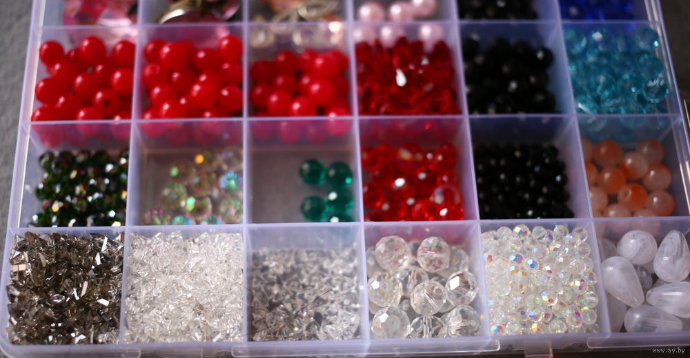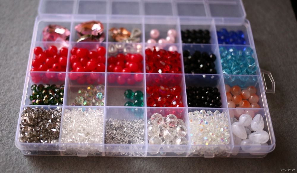 Фурнитура для рукоделия: бусины,хрустальные бусины, стразы, кристаллы-алмазное стекло (очень популярны для создания колье/чокеров). Фурнитура продается вместе с контейнером. Контейнер включен в стоимость.