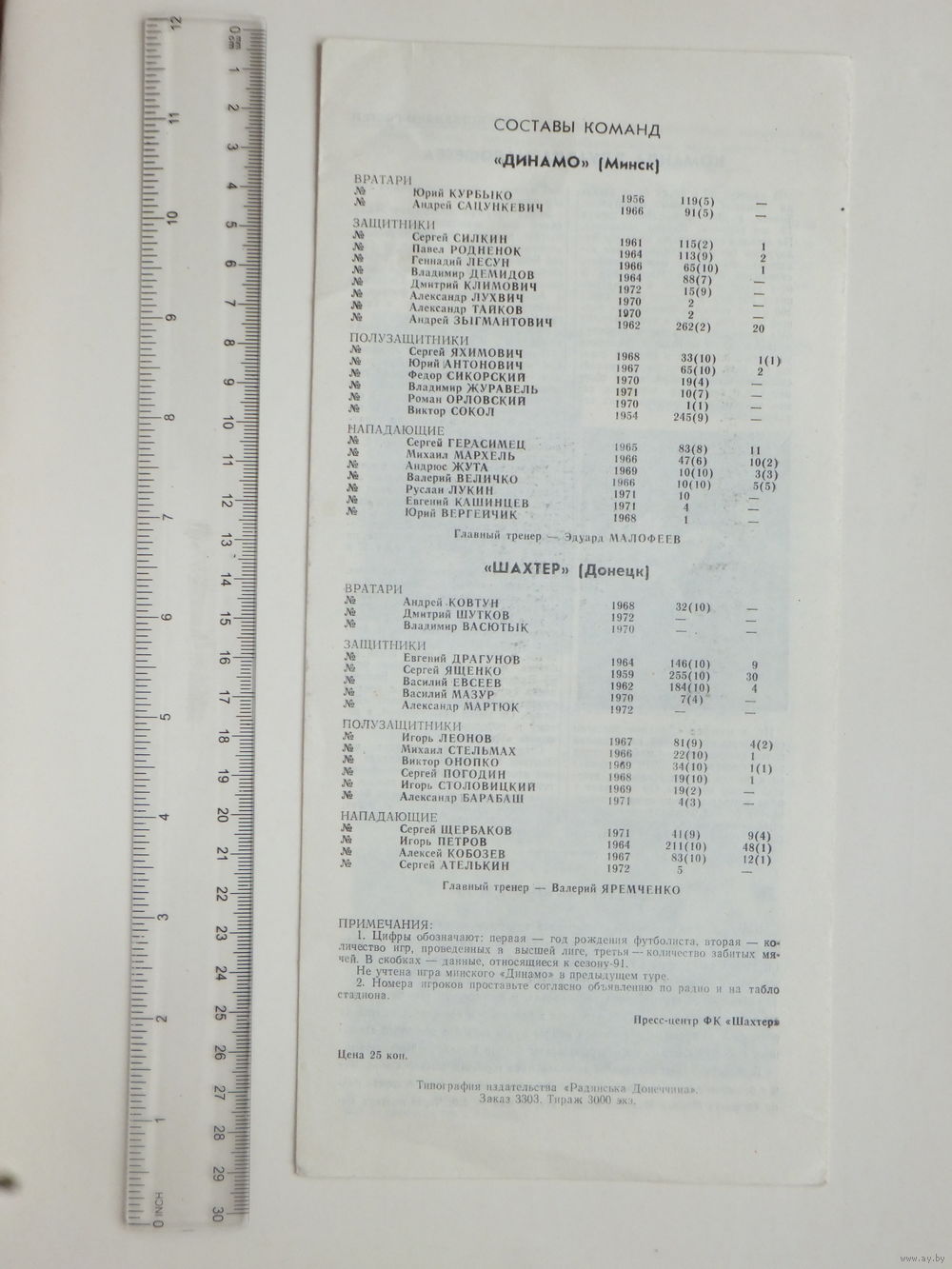 Футбол Шахтер Донецк - Динамо Минск 1991 г