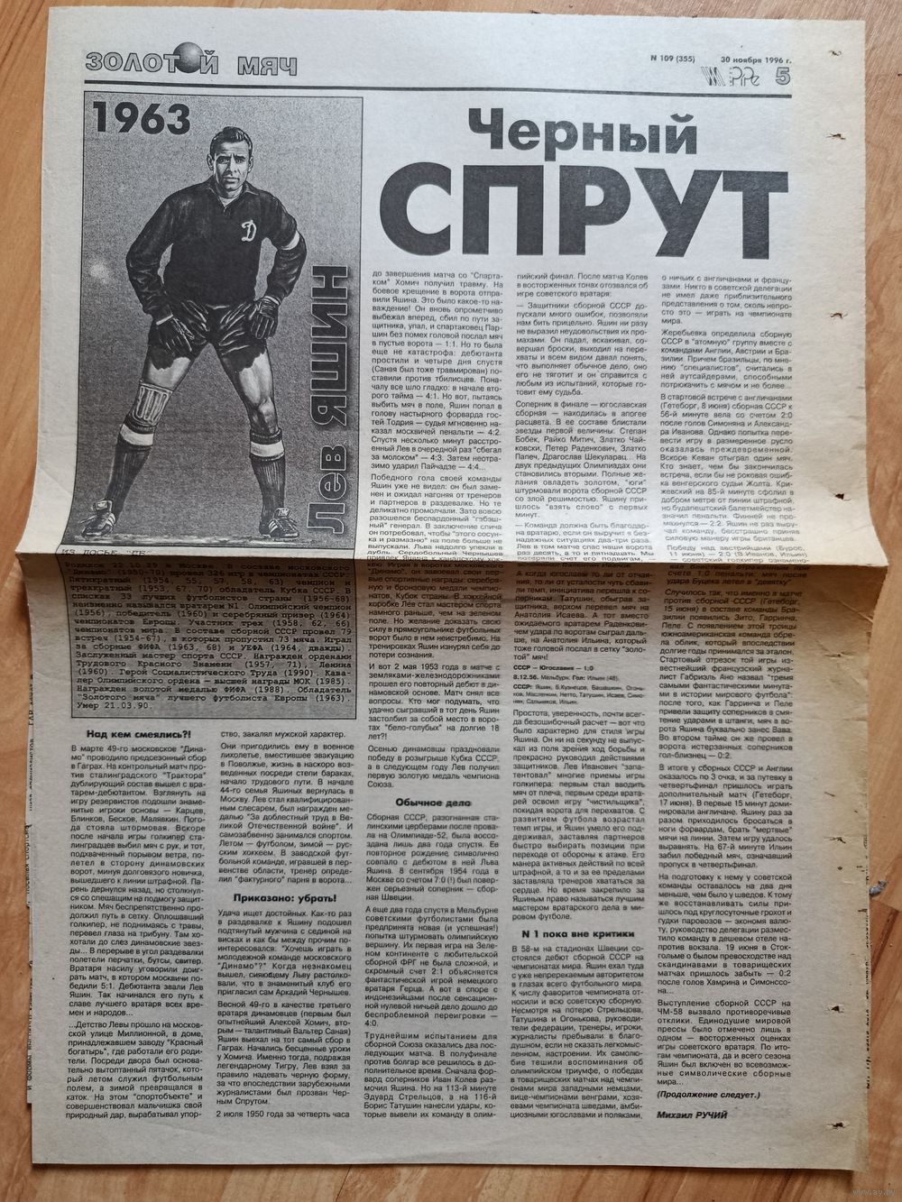 Подборка статей из газет о великом вратаре времен СССР и мирового футбола Льве Яшине.