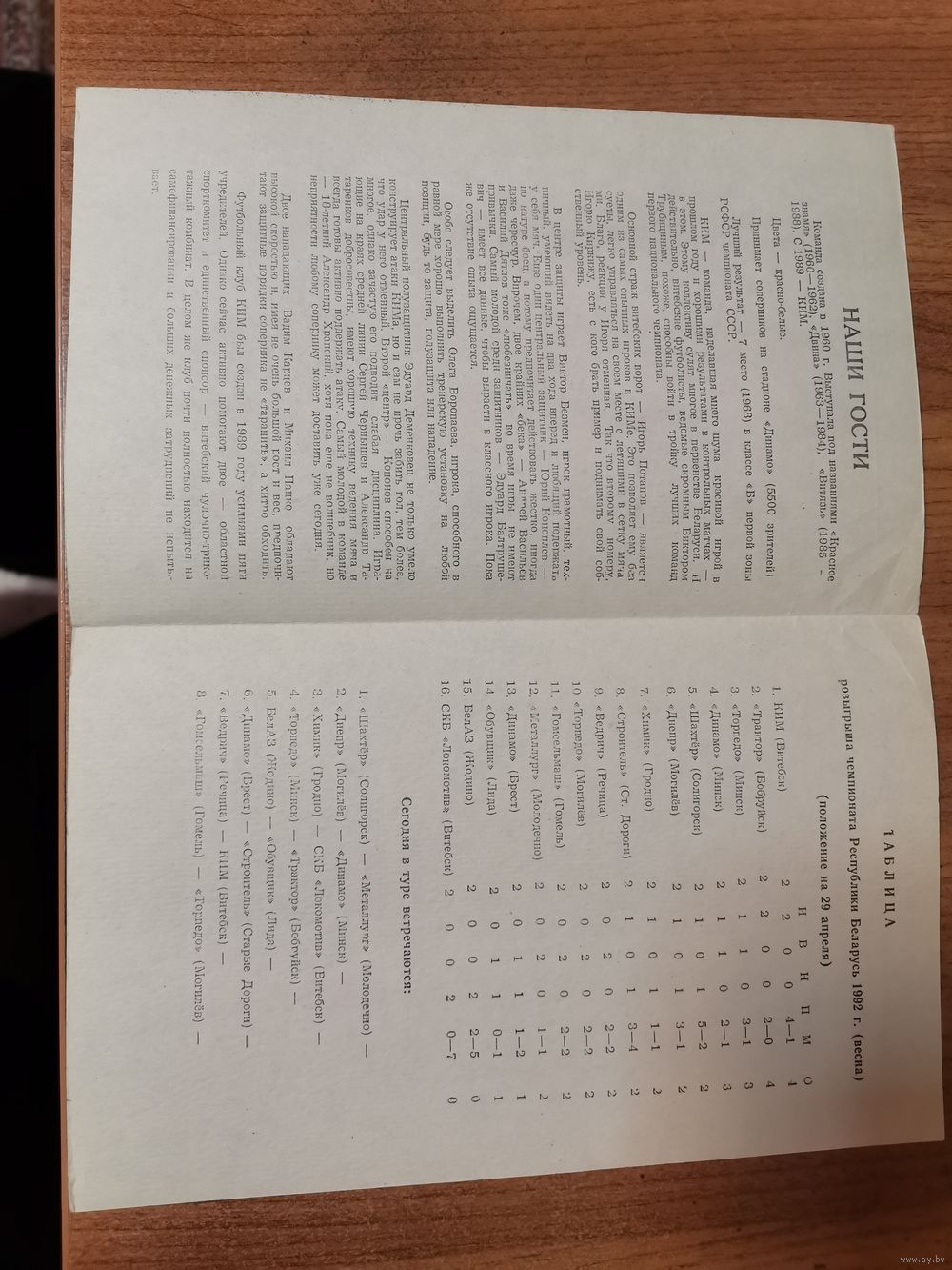 Футбольная программа 1-ч-т. Ведрич- КИМ Витебск.29,04,92г. Автор А.М.Козлов
