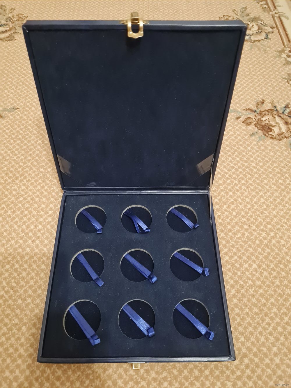 Футляр для монет на 9 ячеек с логотипом Национального банка Республики Беларусь. Диаметр ячейки 45mm. Подходит для 20 рублёвых серебрянных монет выпущенных НБ РБ. Состояние на фото.