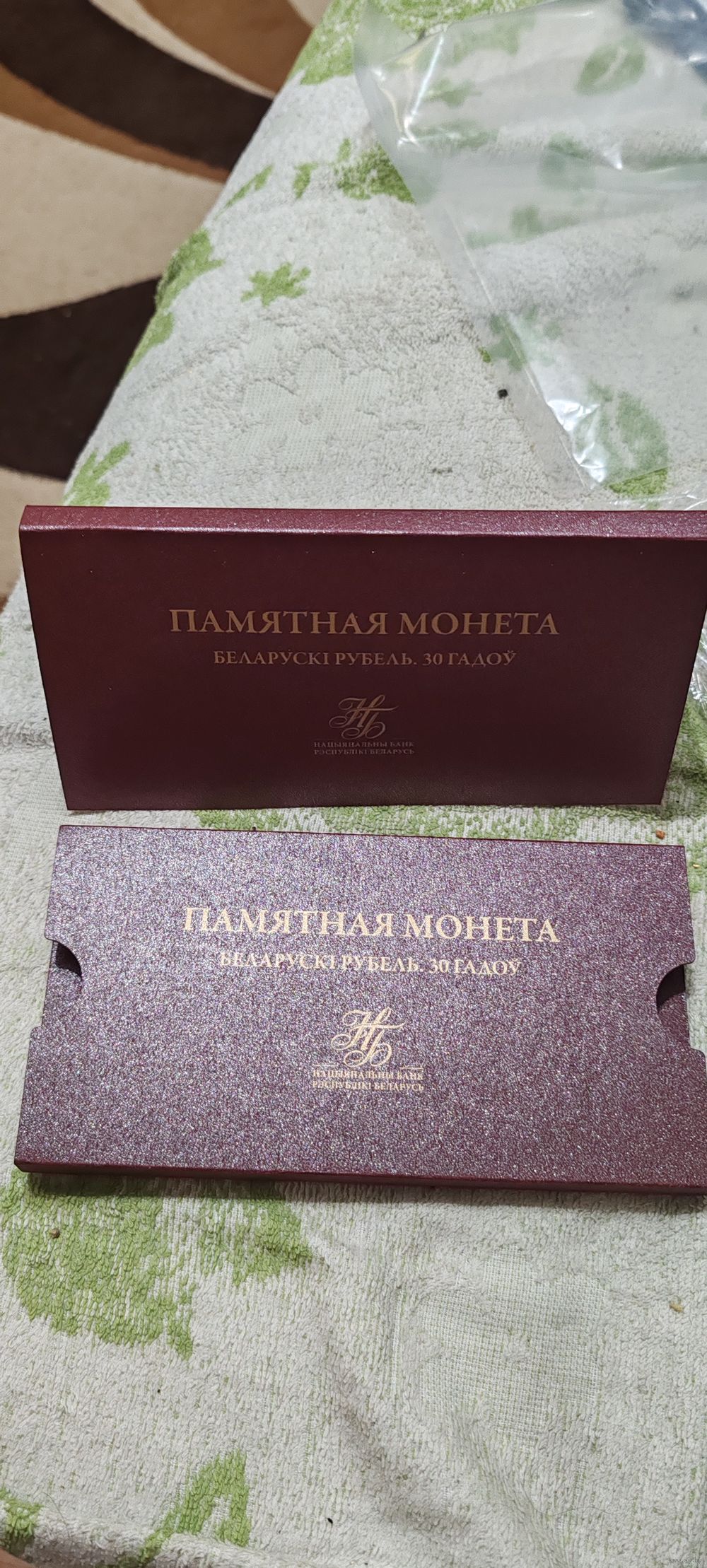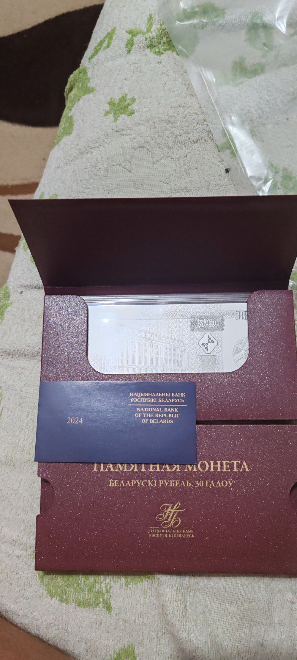 Футляр для памятной монеты, 165/85/10 мм, в обечайке , бумага темно-красная, шелкография золото