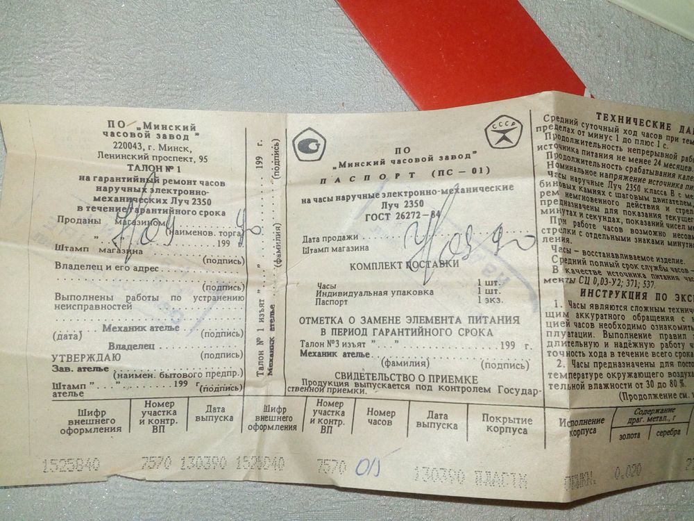 Футляр и паспорт к Луч 2350 СССР