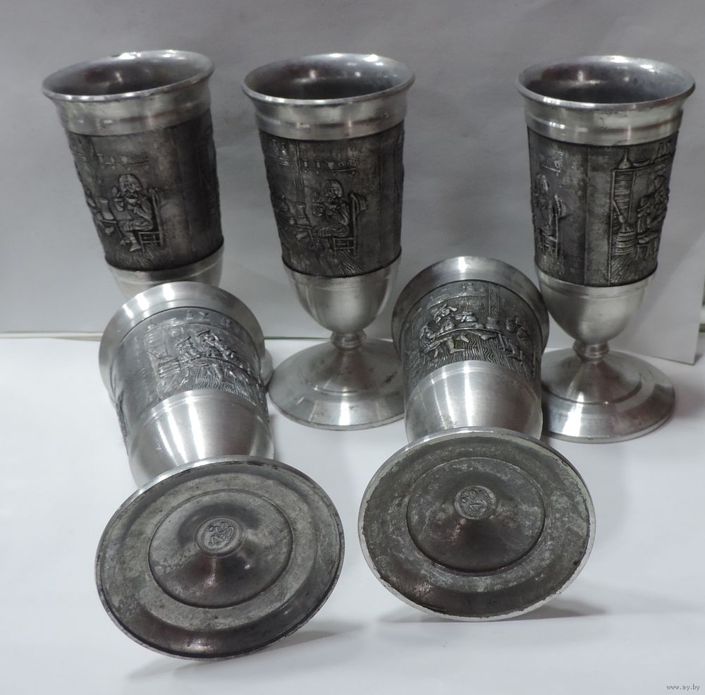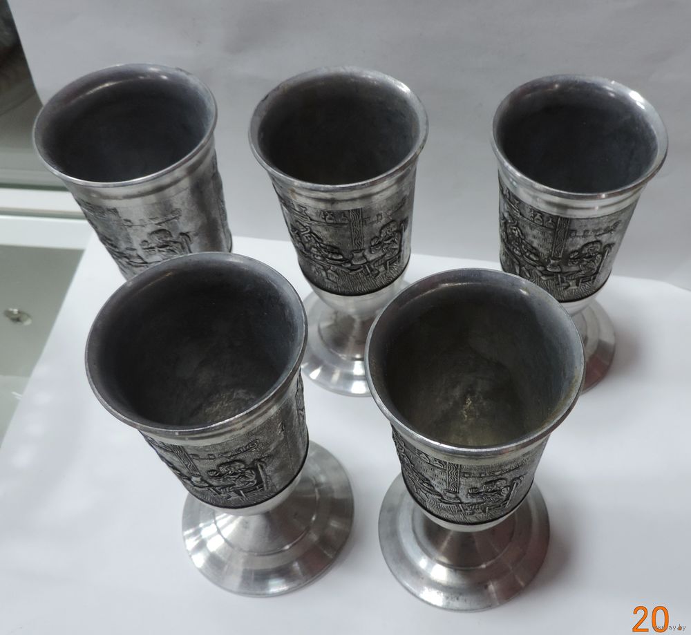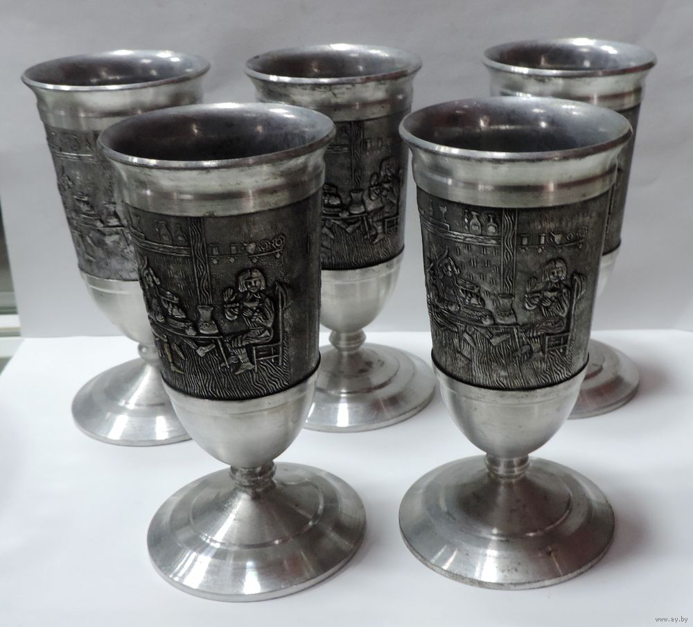 Фужеры с сюжетом 70-е годы Германия. Высота 12.3 см. Олово, цинк. - 5 шт.