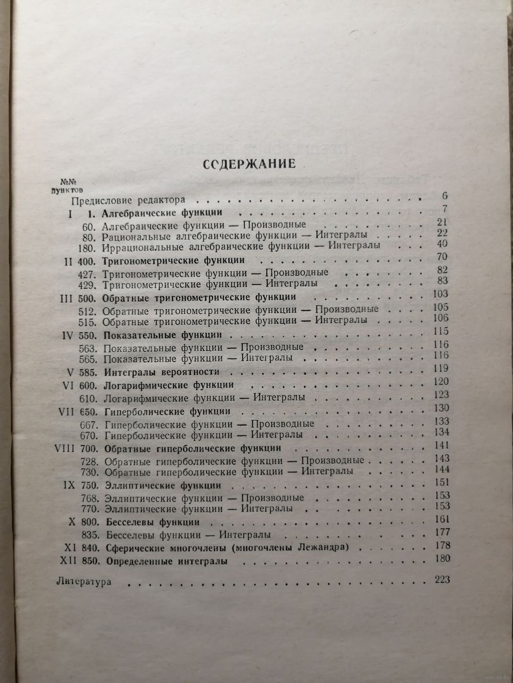Книга содержит весьма подробные таблицы неопределённый и определённых интегралов, а также большое число других математических формул: разложения в ряды, тригонометрические и другие тождества, справочный материал по специальным функциям.