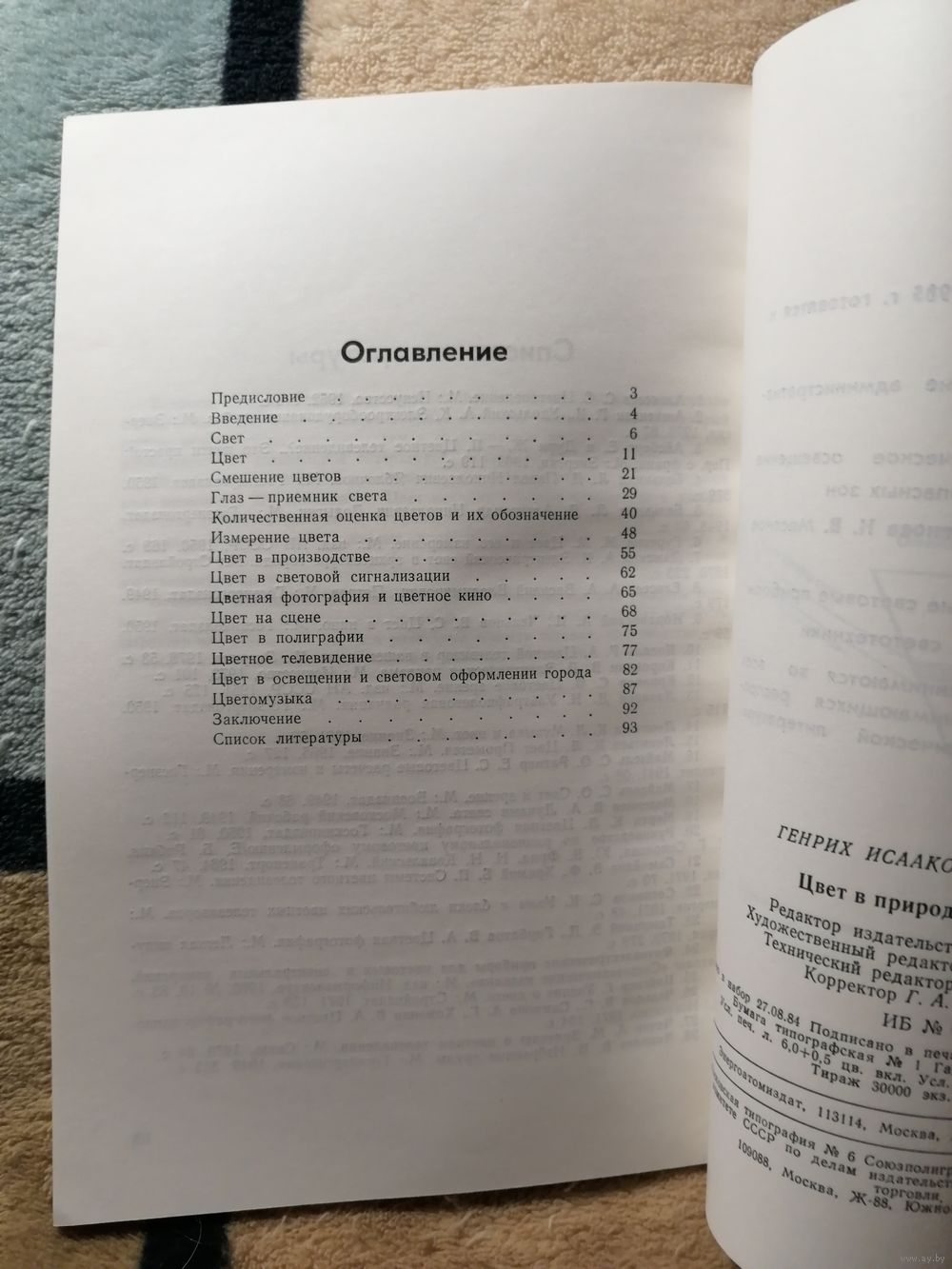В книге рассказывается о физической природе цвета, его восприятии, определении, расчете и измерении. Рассказывается о работе органа зрения - глаза. Дается представление о приборах для измерения цвета. Рассматриваются вопросы использования цвета, в различных отраслях промышленности, применения цвета в цветной фотографии и цветном кино, на театральной сцене, цветной телевидении и в световом оформлении городов. Рассказывается о цветомузыке. Третье издание вышло в 1974 г. Настоящее издание дополнено новыми примерами.