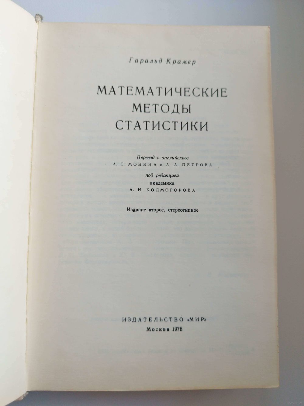 Книга выдающегося шведского математика Гаральда Крамера — классическое руководство по этой дисциплине. Впервые на русском языке она была издана в 1948 г. и сыграла большую роль в развитии теоретических работ по математической статистике, а также в повышении уровня прикладных работ. Собственно математической статистике посвящена третья (последняя) часть книги, а ее вторая часть до сих пор является одним из лучших учебных пособий по теории вероятностей. Крамер (Cramer) Харальд (25.9.1893, Стокгольм - 25 октября 1985, там же), шведский математик. Профессор математики и математической статистики (с 1929), ректор (1950-58) Стокгольмского университета, канцлер шведских университетов (1958-61). Известен фундаментальными работами по теории вероятностей, математической статистике, математической теории страхования. Открыл замечательное свойство нормального закона: если сумма двух независимых случайных величин нормальна, то и каждое слагаемое имеет нормальный закон распределения.