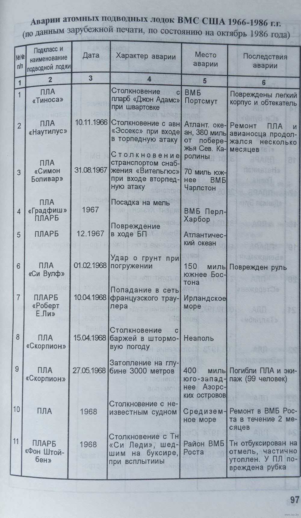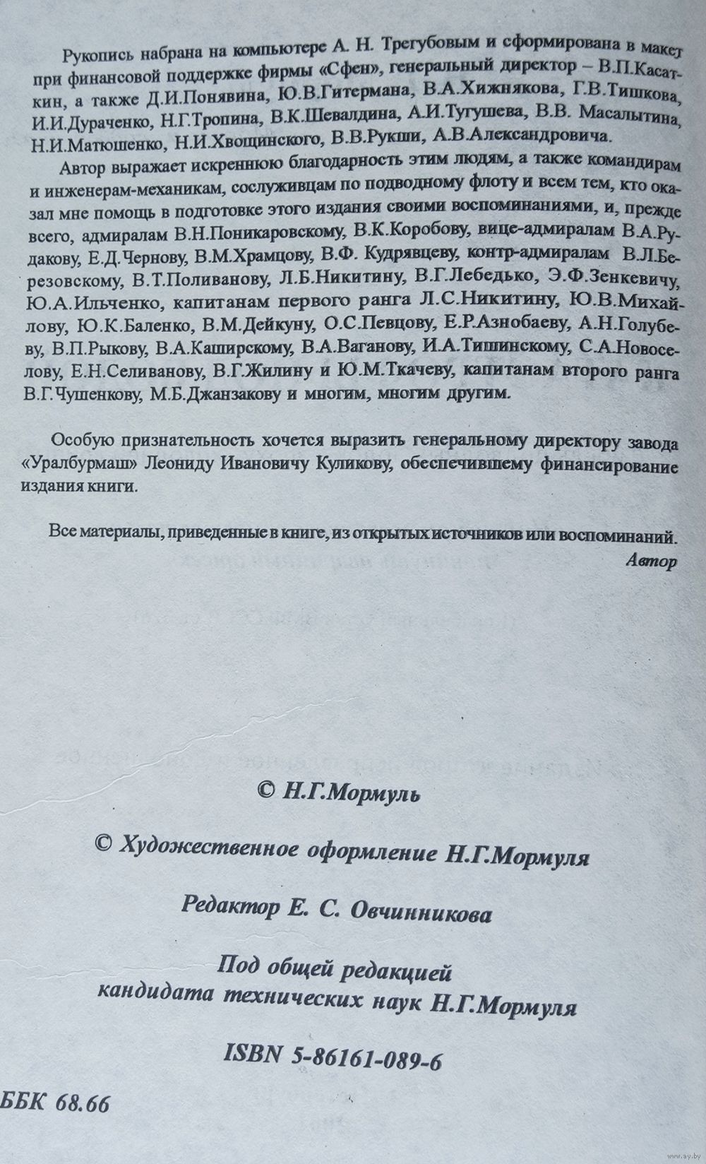Н.Г.Мормуль. Катастрофы под водой (гибель подводных лодок в эпоху холожной войны). С-Петербург 2001г. Тираж 5000экз. 655 страниц.