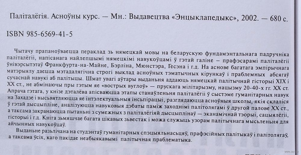 Г. Мюнклер і інш. Паліталогія: Паняцці. Аналізы. Тэорыі: Асноўны курс. Менск. Энцыклапедыкс. 2002 г. 678 с. Мяккая вокладка.