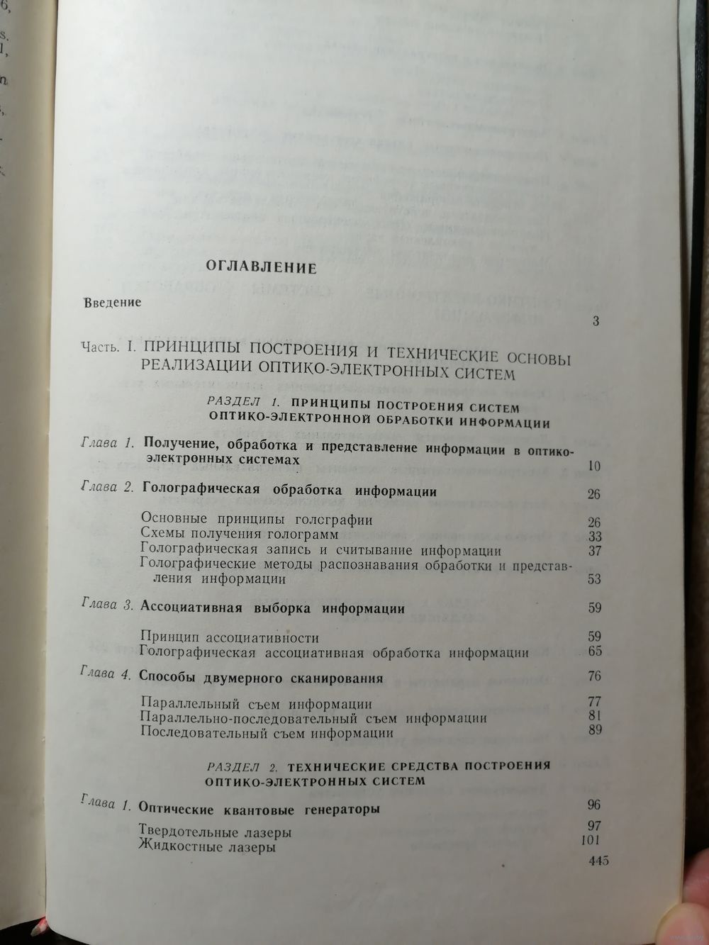 Книга посвящена рассмотрению методов оптико-электронной обработки информации и принципов построения соответствующих систем. В ней описаны методы голографии, методы ассоциативности и методы оптимального поиска информации. Изложены общие принципы голографии, рассмотрены возможности создания голографических запоминающих и распознающих систем.