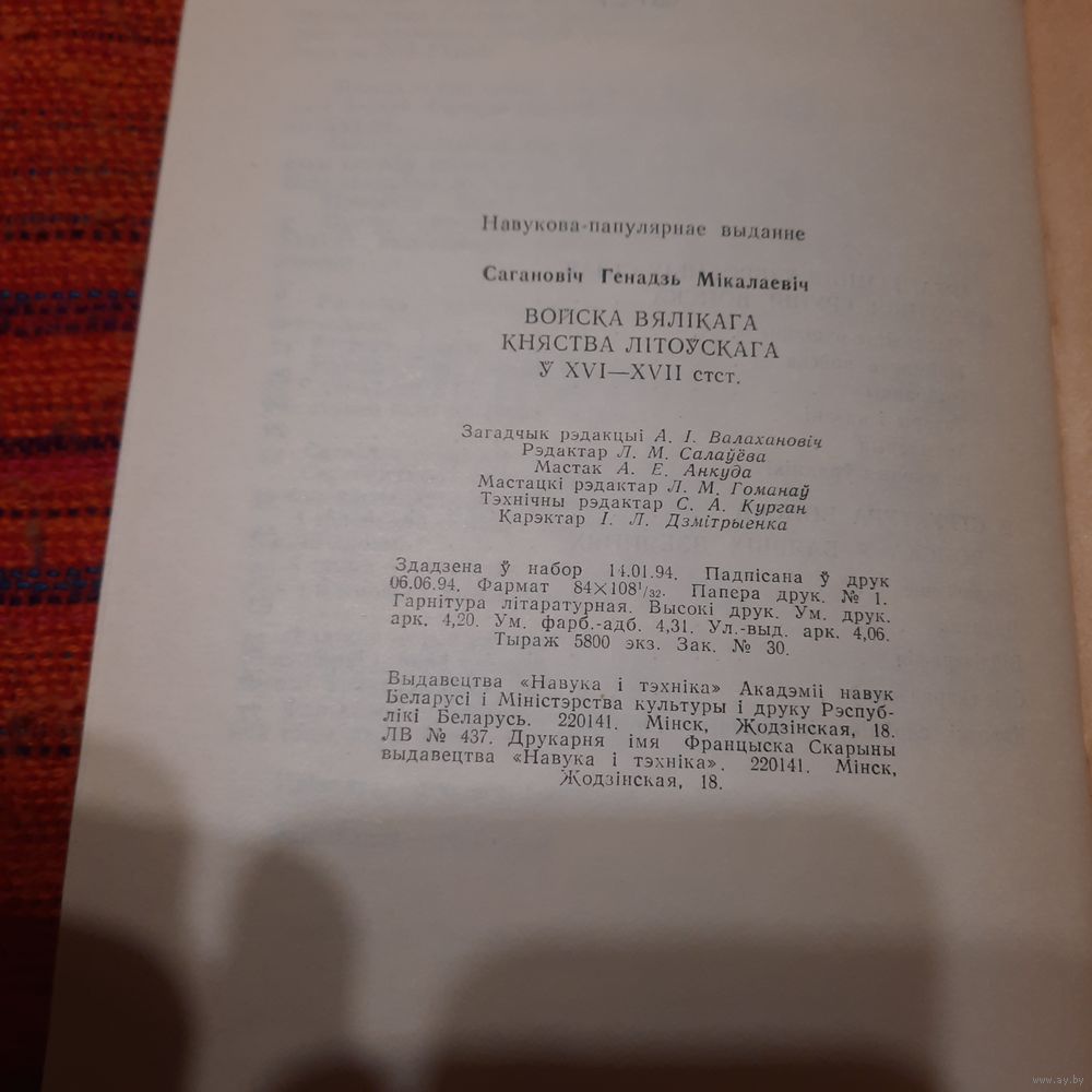 Г.Сагановіч Войска Вялікага Княства Літоўскага ў XVI-XVII стст. (перавыдавацца больш не будзе)