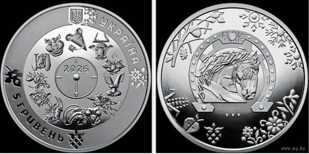 G УКРАИНА 5 гривен 2025 (2026) год Китайский год Лошади