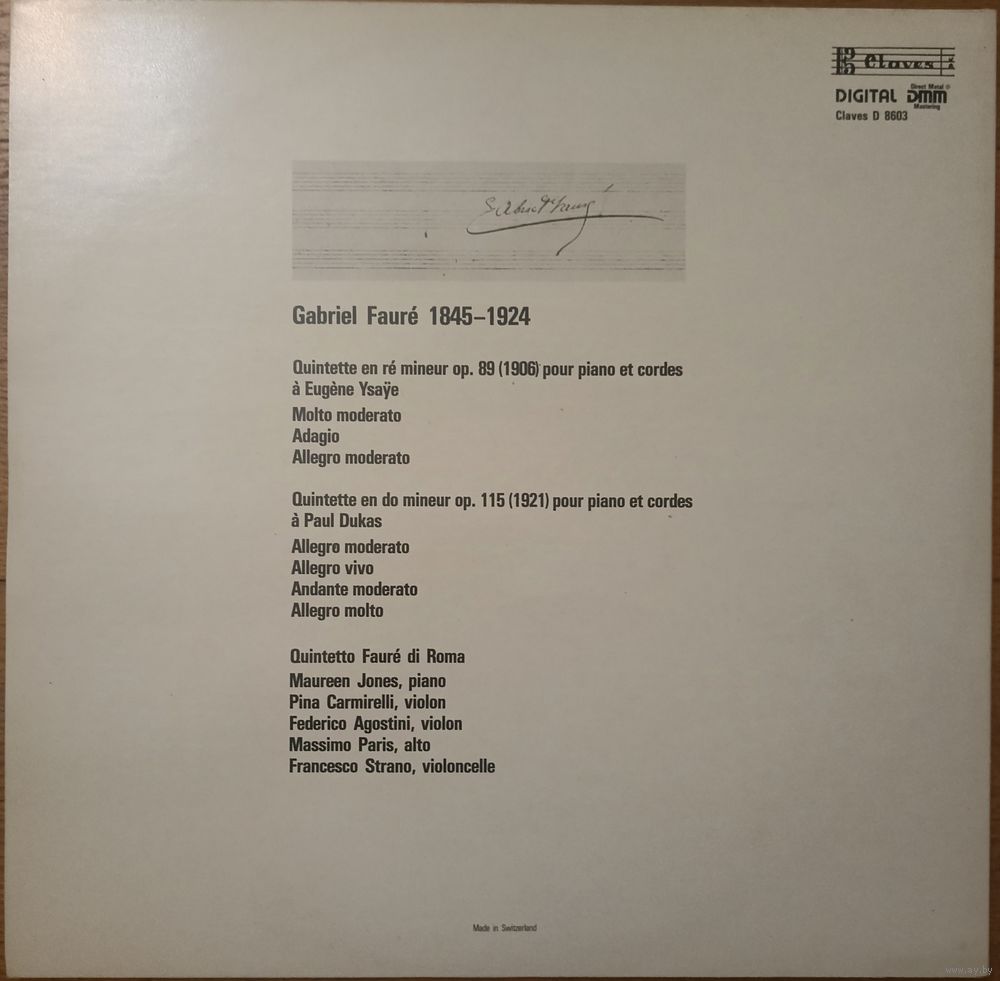 Gabriel Faure - Quintetto Faure Di Roma – Klavierquintette Op. 89 Und Op. 115.