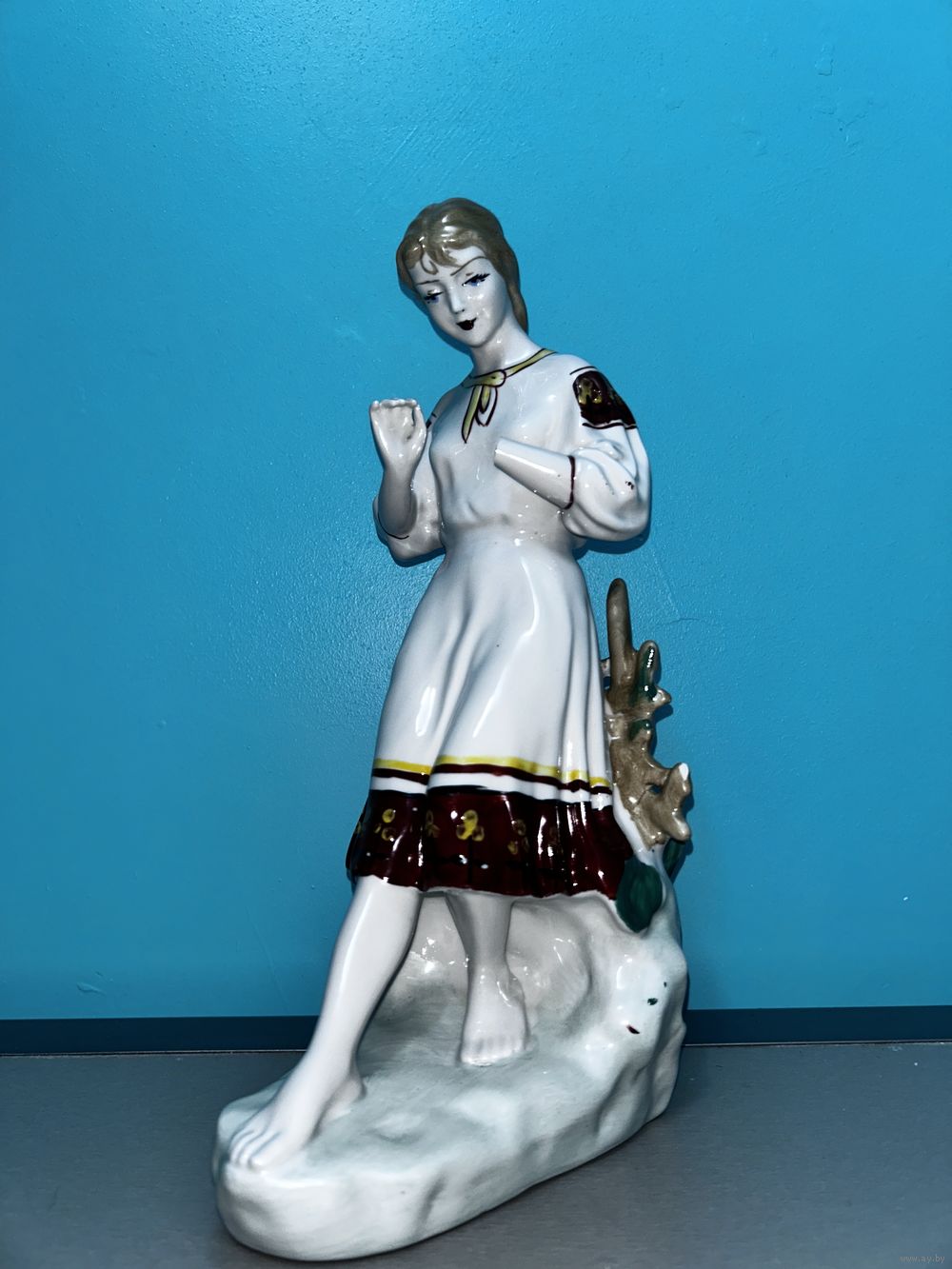 Статуэтка винтажная Любит-не-любит Гадание на ромашке, скульптор О.Л. Жникруп, фарфор, роспись, Полонский завод художественной керамики Полонное ЗХК, СССР, 1973-1991 гг.