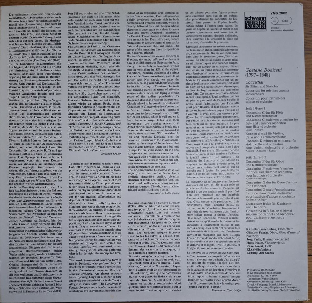| Исполнитель | Karl-Bernhard Sebon / Gunther Passin / Jorg Fadle / Hans Maile, Rene Forest, RIAS-Sinfonietta, Jiri Starek |