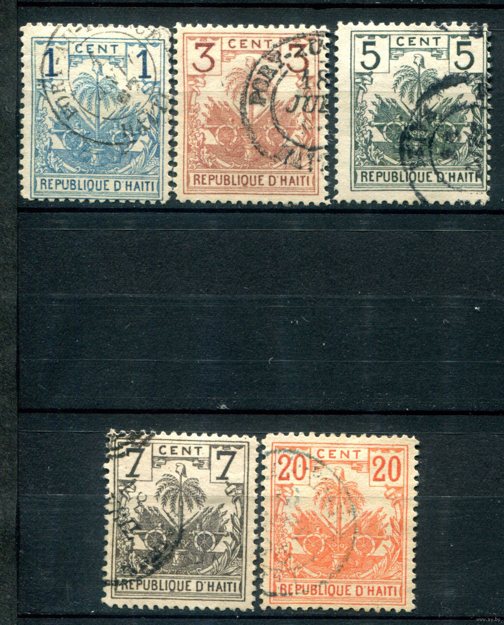 Гаити - 1896г. - пальма, герб - 5 марок - гашёные. #4-W1-125-A-2