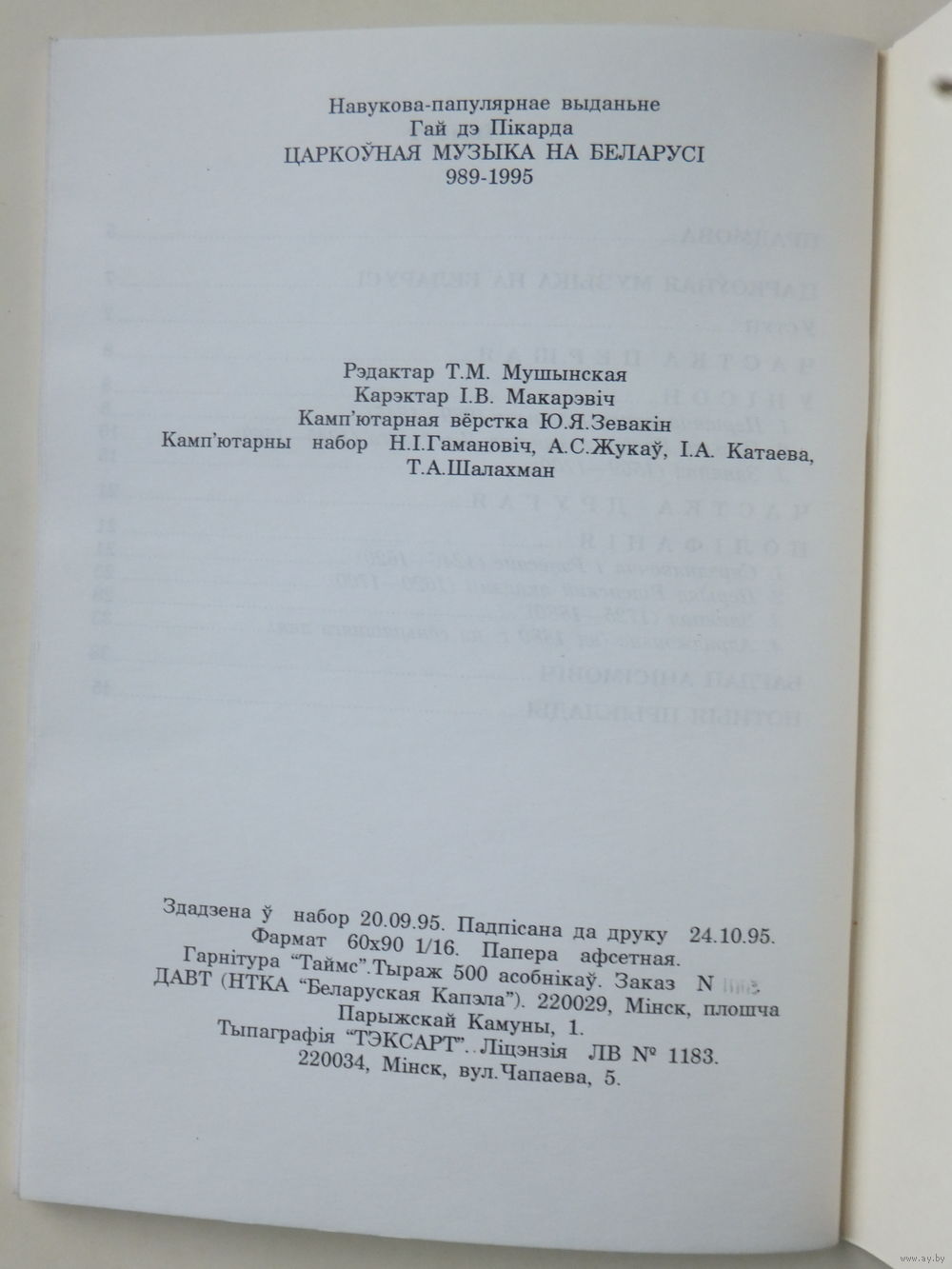 Гай дэ Пікарда Царкоўная музыка на Беларусі 989 -1995