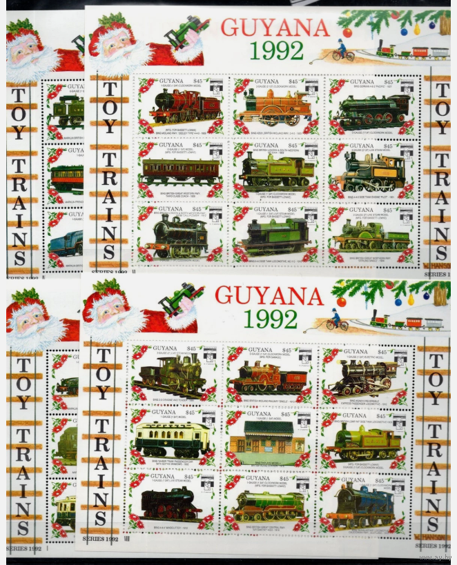 ГАЙАНА 1992 ИГРУШЕЧНЫЕ ПОЕЗДА - ЛОКОМОТИВЫ 4 ЛИСТА MNH