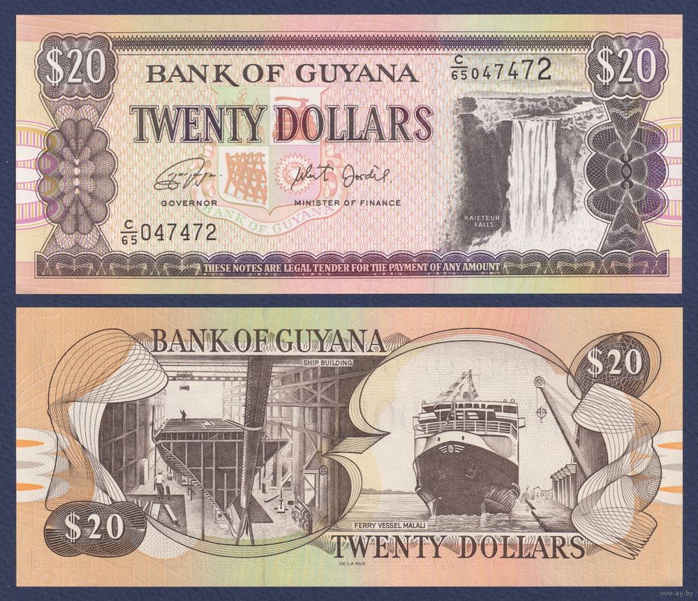 Гайана, 20 долларов 2018 г, P-30g (C, водопад Кайетур, верфь), UNC