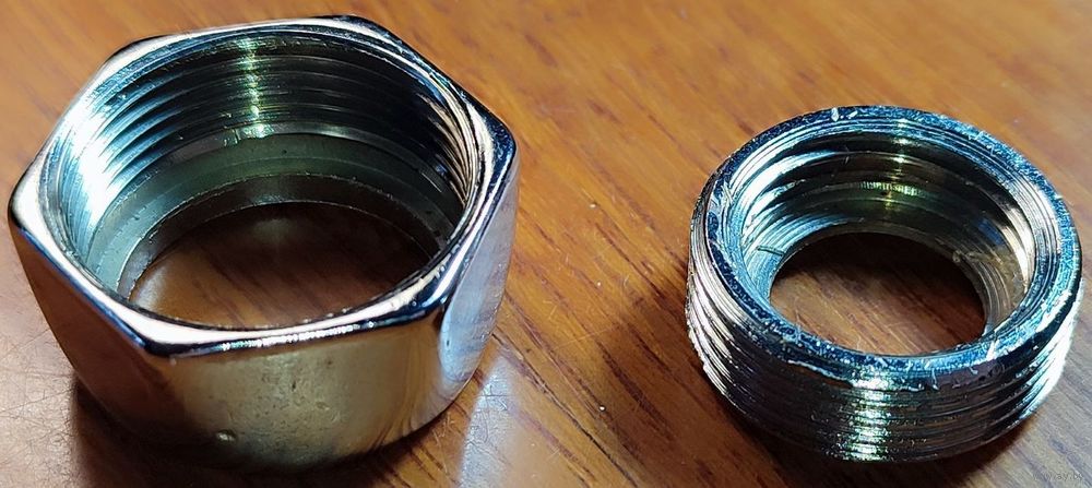 Гайка сантехническая с соединителем. Внутренний диаметр гайки: около 27мм, внутренний диаметр соединителя: с одной стороны около 25мм и около 20мм с другой. Комплект новый