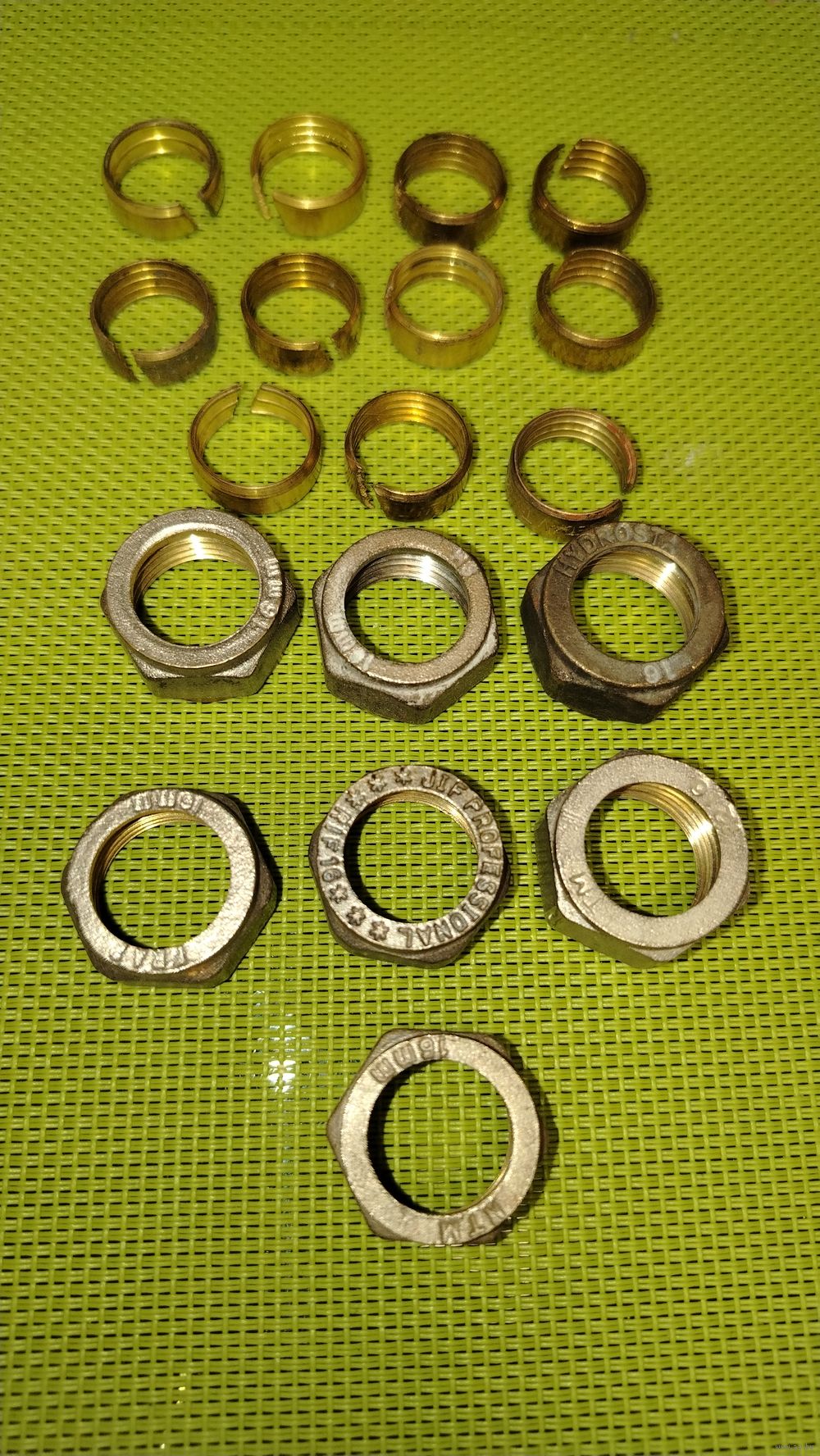 Поштучно 2 руб за гайку и 1 руб за кольцо. За всё 20 руб. и это дешево.