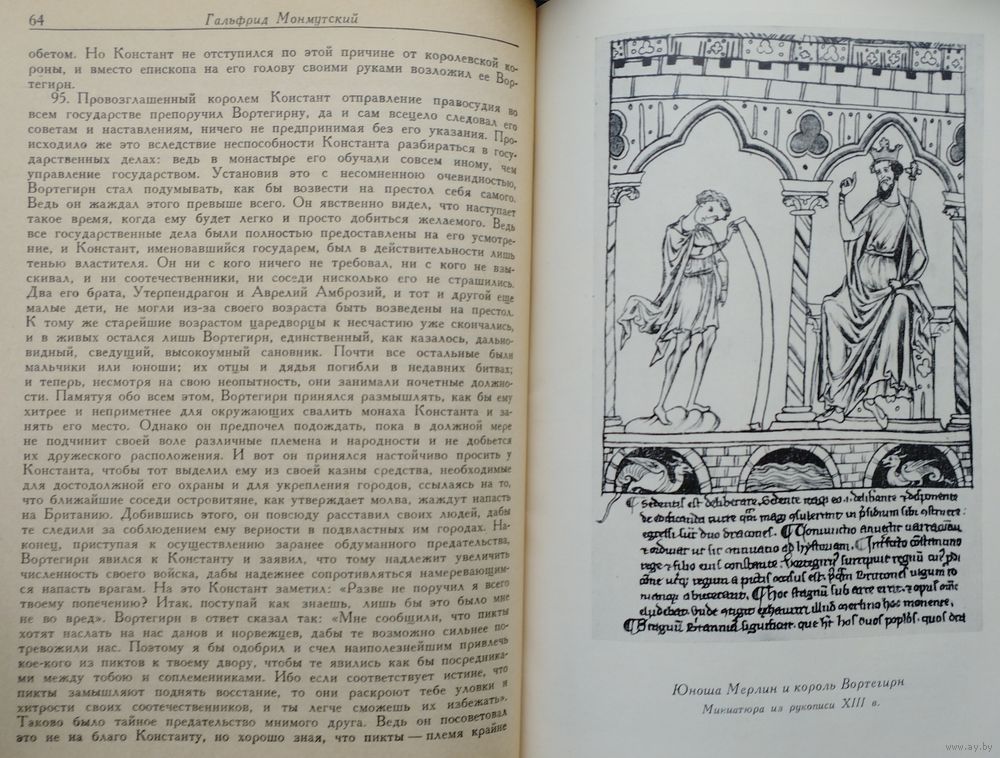 Большой формат. 286 стр. Основной труд Гальфрида Монмутского — "История бриттов" ("История королей Британии"). Знакомство автора с античной традицией, литературный талант и смелая фантазия позволили ему создать увлекательное историческое повествование. Определенные хронологические рамки рассказу придают указания на события библейской и античной истории. Однако в отличие от большинства средневековых хронистов Гальфрид начинает свой труд не от сотворения мира, а от разрушения Трои и странствий Энея. Историю Британии Гальфрид Монмутский стремится представить в контексте событий мировой истории и показать, что ее правители связаны родственными узами с героями древности.
