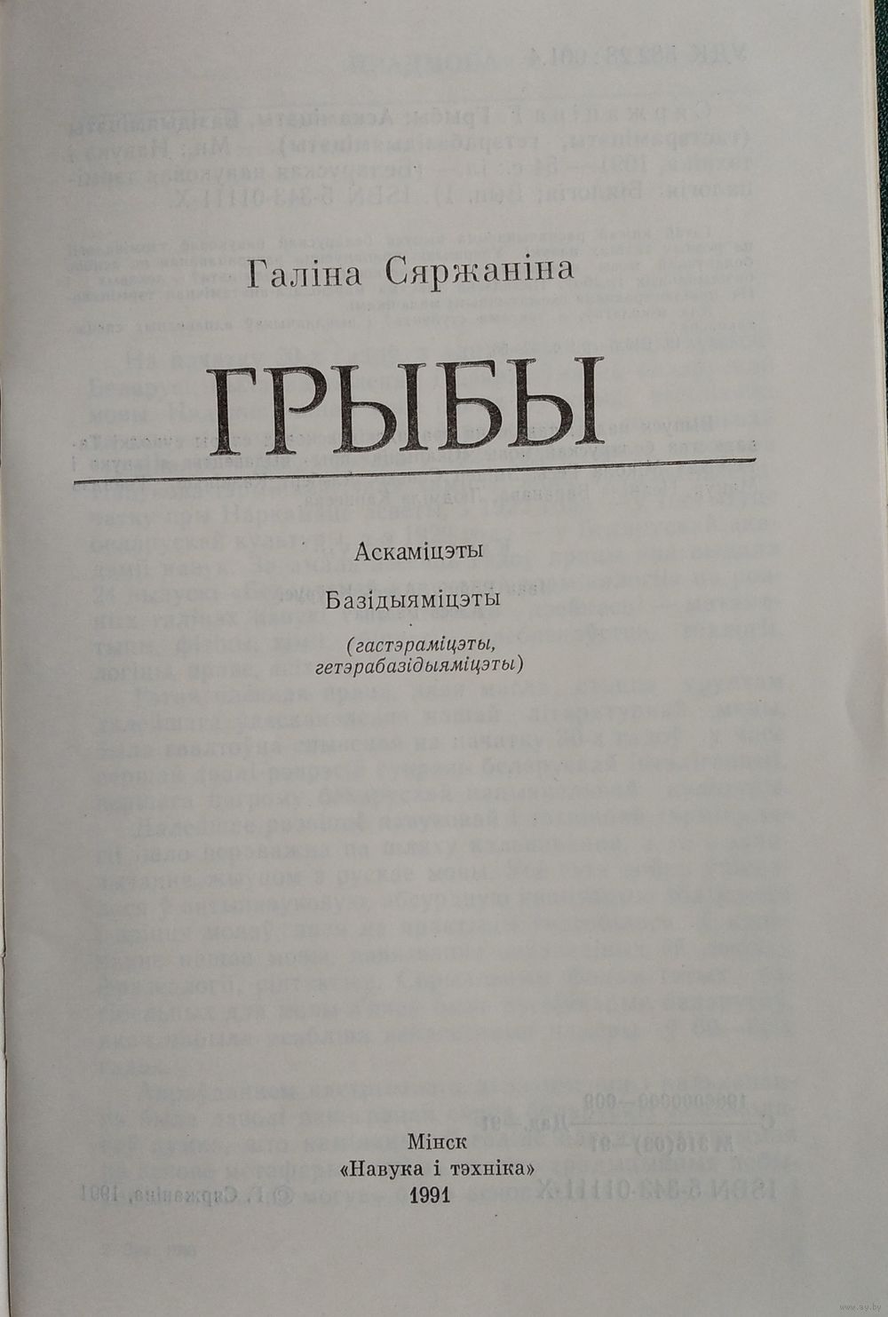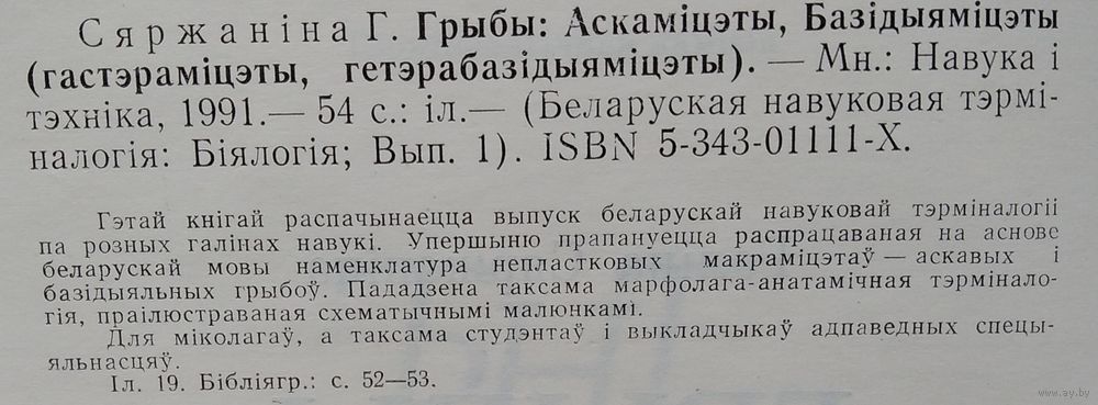Галіна Сяржаніна. Грыбы: Аскаміцэты. Базідыяміцэты: (гастэраміцэты, гетэрабазідыяміцэты). Серыя: Беларуская навуковая тэрміналогія. Біялогія ; вып. 1. Мінск : Навука і тэхніка, 1991 г. 52 с. Мяккая вокладка.