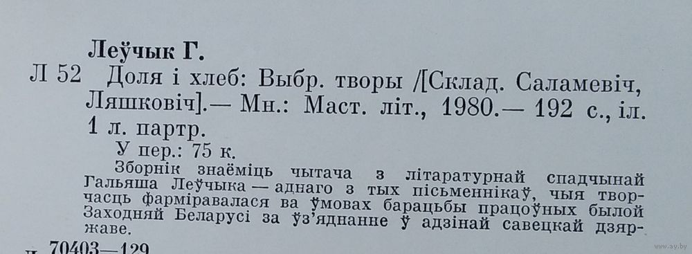 Гальяш Леўчык. Доля і хлеб: выбраныя творы. Мінск : Мастацкая літаратура, 1980 г. 189 с. Цверды пераплет. Паменш.фармат.