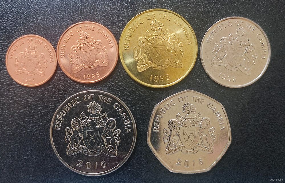 Гамбия 1, 5, 10, 25, 50 бутут и 1 даласи (6 монет) 1998-2016 UNC